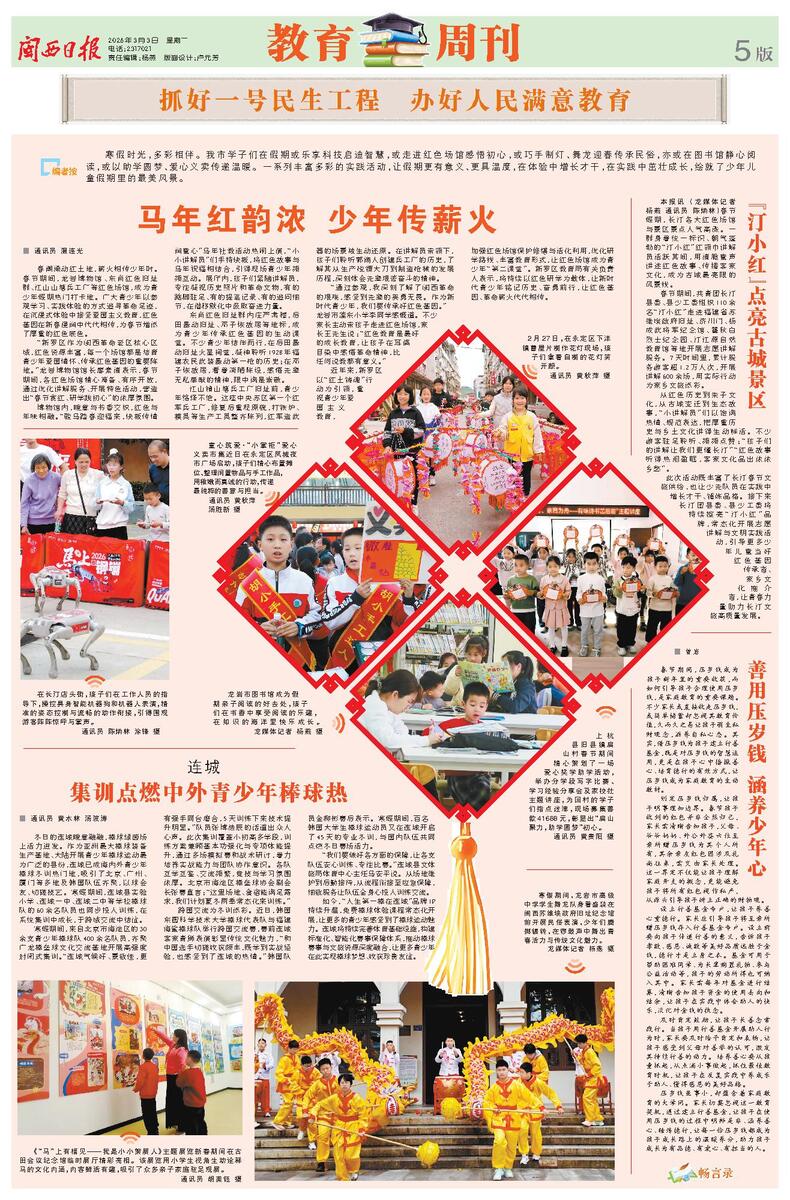 近年来,新罗区以“红土铸魂”行动为引领,重视青少年爱国主义教育,加强红色场馆保护修缮与活化利用,优化研学路线、丰富教育形式,让红色场馆成为青少年“第二课堂”。新罗区教育局有关负责人表示,将持续以红色研学为载体,让新时代青少年铭记历史、奋勇前行,让红色基因、革命薪火代代相传。