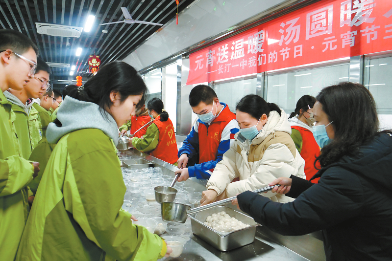3月3日,长汀一中一校两区同步开展元宵送汤圆主题活动,以一碗碗香甜汤圆传递校园温情。 通讯员 陈炳林 陈元明 摄