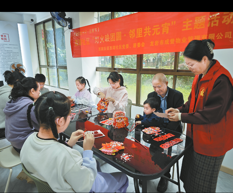 正月十四上午,新罗区西陂街道西湖社区在龙西小区开展“灯火映团圆,邻里共元宵”主题活动