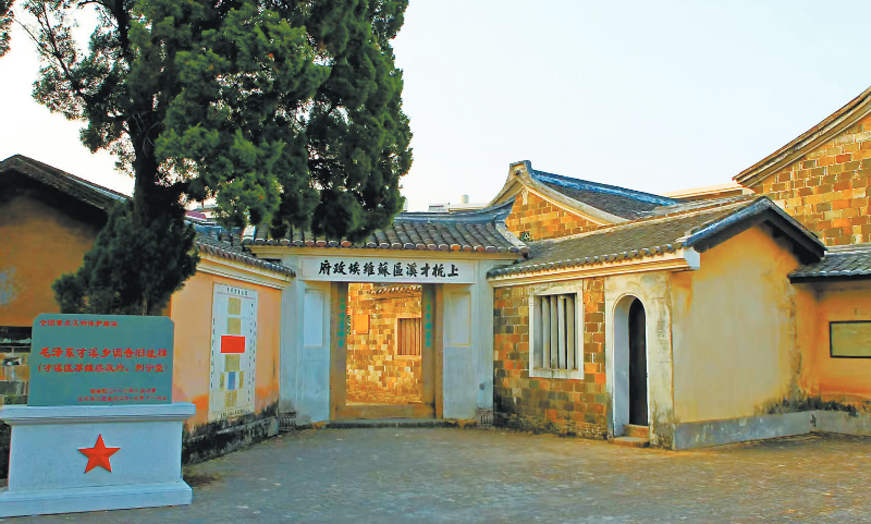 土地革命战争时期,毛泽东曾九到上杭,三进才溪,写下了彪炳史册的《才溪乡调查》。才溪乡调查是毛泽东一次著名的农村调查,是中国共产党人走群众路线、深入实际、调查研究、实事求是的光辉典范。毛泽东才溪乡调查旧址群主要包括才溪区苏维埃政府旧址、才溪区工会(又名列宁堂)、光荣亭和列宁台。图为才溪区工会旧址(列宁堂)。1933年11月下旬,毛泽东第三次到才溪进行社会调查时住在区工会的东厢房,并在才溪区工会召开了工人代表、贫农代表和耕田队长等调查会。1985年,福建省人民政府将其公布为第二批文物保护单位。2013年由国务院公布为第七批国家重点文物保护单位。 通讯员 杨国鑫 摄