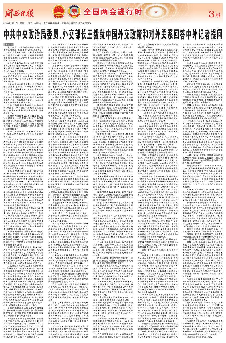 中共中央政治局委员、外交部长王毅就中国外交政策和对外关系回答中外记者提问