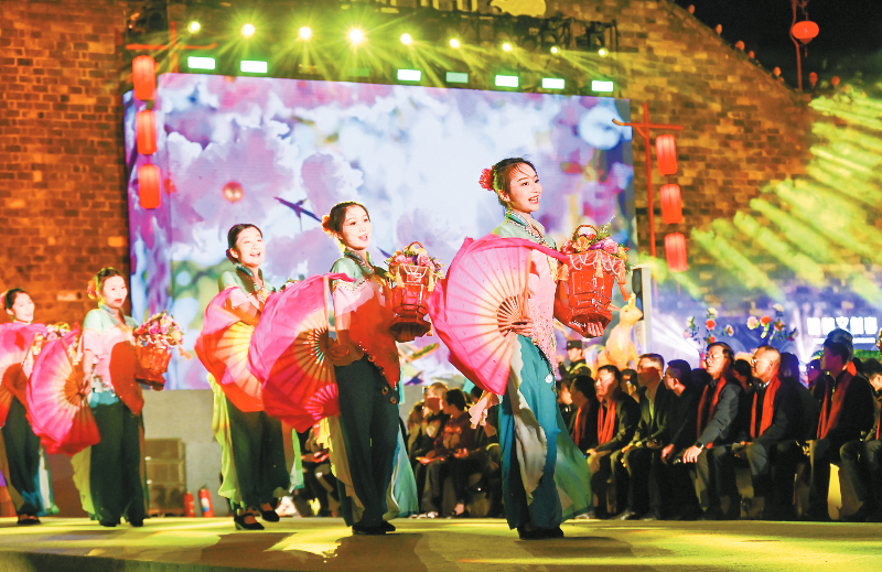 今年的舞台不再局限于方寸之间。雄伟的济川门化身为最恢宏的主舞台,古城墙、汀江水、水东桥则被打造成流动的T台。咏春拳的招式划破光影,寸劲迸发;闽西汉剧的高腔与采茶灯的欢快旋律交织回荡,漫过汀江;木偶戏的灵动遇上十番器乐的悠扬,活灵活现;客家童谣的软糯与木桐号子的浑厚相撞,穿透夜色;萌娃汉服走秀萌态可掬,非遗时尚大秀则把客家记忆融进时代气息——光影摇曳间,这座千年古城再现“灯火家家市,笙歌处处楼”的繁华盛景,以满城璀璨,笑迎八方来客。