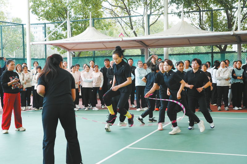 武平女职工八字跳绳比赛。通讯员 王展雄 摄