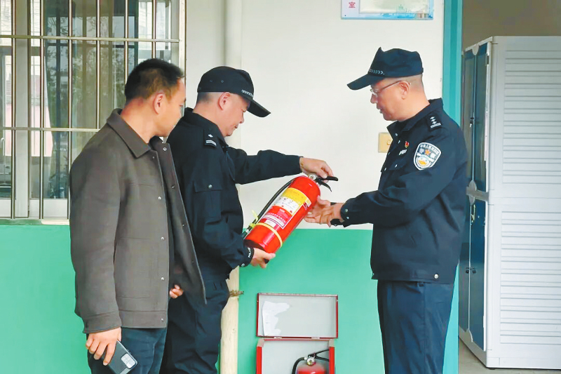 武平公安民警深入实验小学对消防设施进行检查。