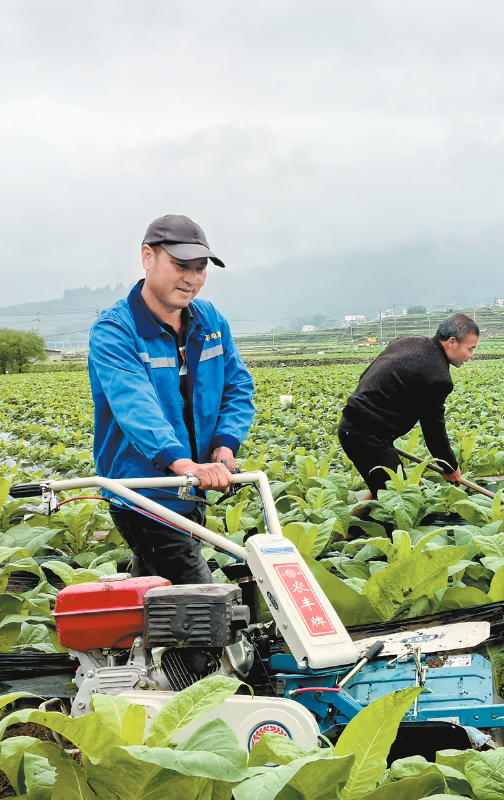 连日来,永定区虎岗镇龙溪村种烟大户林兴华带领工人到烟田掀膜、培土、除草,田间一片生机勃勃的景象。他去年烤烟收入9.6万元,生活质量稳步提升。
