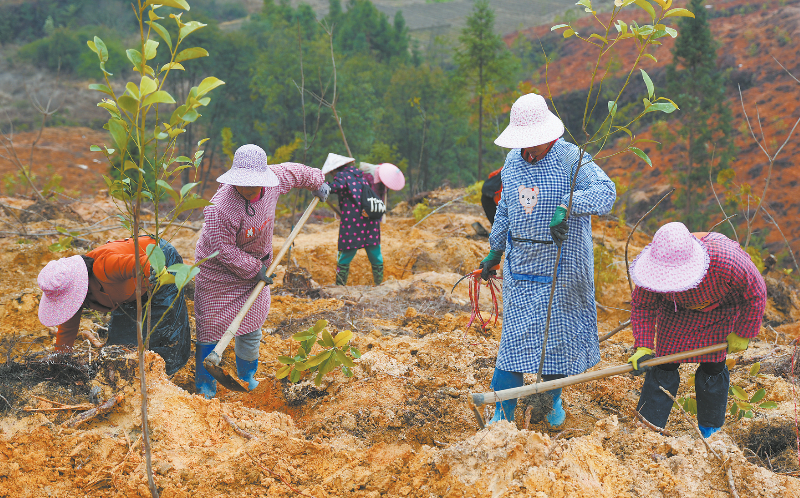 3月10日,长汀县在河田镇露湖村水土保持科教园山场开展2026年“互联网+全民义务植树”活动,当天,参与植树的志愿者共种下木荷、福建柏等树种3000余株。通讯员 林加涛 朱芳彬 邱启发 摄
