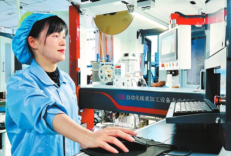 连日来,永定富鑫达电子制造有限公司车间内,新引进的自动化生产线正满负荷运转,一批批精密汽车线束经过自动剥皮、灌胶工序后下线,准备发往国内知名汽车配套厂家。作为永定“链式招商”引进的高新技术企业,该公司专注于汽车及安防线束、连接器的研发制造,企业产品良品率稳定在99%以上,成功融入主流供应链体系。通讯员 熊川 摄