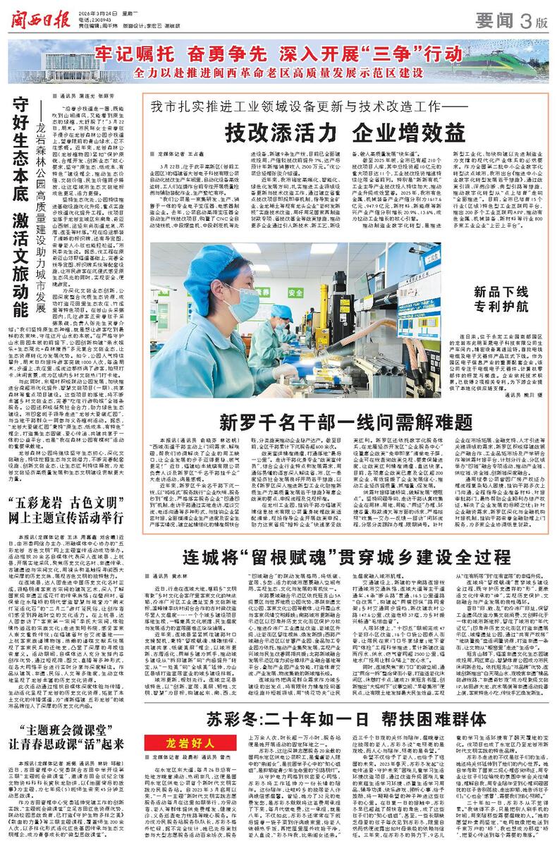 在龙州工业园,挂钩干部为福建天博信息技术有限公司量身梳理政策适配清单,现场指导企业开展政策申报,助力这家省级“瞪羚企业”快速享受政策红利。新罗区还依托数字化服务体系,在龙雁经济开发区“企业服务中心”设置惠企政策“免申即享”清单电子屏,企业可在线查询政策兑现、要素保障进度,让政策红利精准滴灌、直达快享。目前,各项惠企政策已惠及全区超200家企业,有效提振了企业发展信心,推动工业经济提质量、抓增量、促发展。