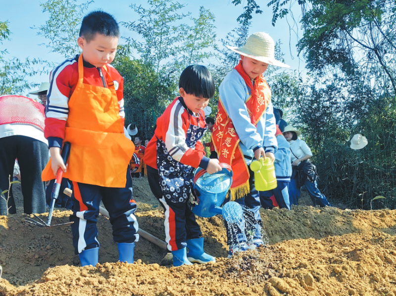 近日,龙岩学院附属幼儿园“童心向党春耕启航”劳动教育实践活动在校园劳动实践基地举行。孩子们在泥土芬芳中躬身劳作、亲近自然,在亲身实践中感受劳动乐趣、收获成长力量。 卢丽宽 童路 摄