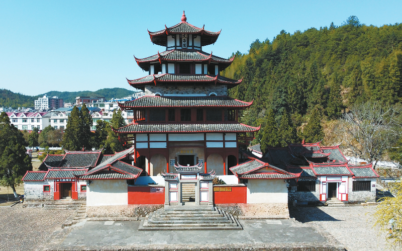 清朝中叶,上杭蛟洋村人民为了祈求文化昌盛,于村中心倡建文昌阁,历时13年建成。辛亥革命后,文昌阁改办为广智小学,邓子恢等人曾任教于此,开展革命活动。1929年7月中旬毛泽东同贺子珍、蔡协民、江华、曾志等人前往上杭蛟洋文昌阁指导召开中共闽西第一次代表大会,大会通过了毛泽东亲自修改的政治决议案。大会之后,闽西各地认真贯彻“闽西一大”“武装斗争、抽多补少”的土地革命精神,呈现一派“收拾金瓯一片,分田分地真忙”的喜人景象。 杨国鑫 摄