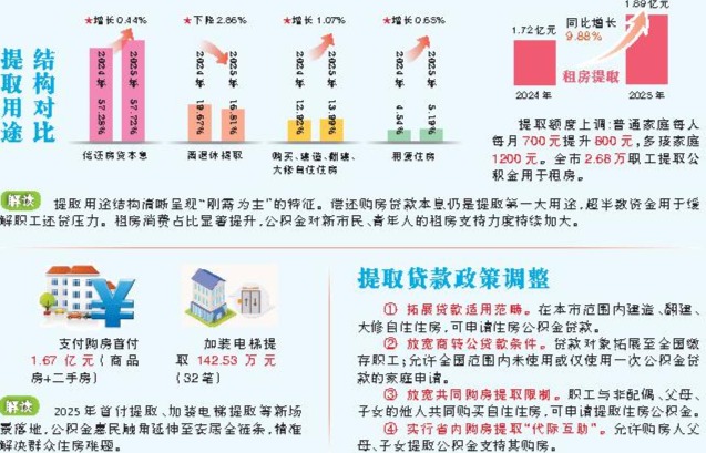 2025年,全市11.86万名缴存职工提取公积金36.53亿元,提取额占当年缴存额的72.93%,资金使用回归住房消费本源,惠民场景持续延伸。