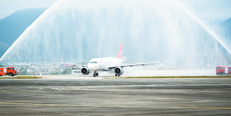 3月29日,龙岩连城冠豸山机场正式恢复通航。10点35分,首趟从上海飞往连城的HO1019航班穿过“水门”平稳降落。历经19个月改扩建升级的连城冠豸山机场,再度激活闽西老区空中交通网络,为闽西老区人民及八方来客搭建起便捷高效的“空中桥梁”,也为区域发展注入新的强劲动能。