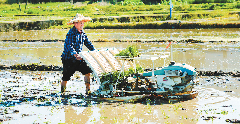 近日,在永定区湖雷镇上北村的田间,旋耕机和高速插秧机来回穿梭,秧苗被整齐有序地插入田间。今年以来,永定区紧紧围绕播种面积不减、粮食总产有增的总目标,早谋划、科学部署,扎实推进春耕备耕各项工作。截至目前,全区已落实早稻面积3.33万亩。通讯员 熊川 谢湾塆 摄