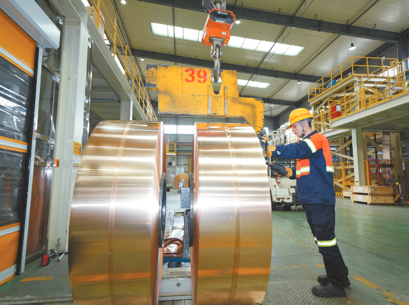 近日,在位于上杭县的福建紫金铜业有限公司冷轧三车间内,生产线高速运转,铜板带箔产品在自动化设备中有序成型。作为上杭县金铜产业的龙头企业,该公司提前谋划布局,持续推进技术优化与设备升级,对接国内外客户,锁定多个长期订单。通讯员 杨国鑫 摄