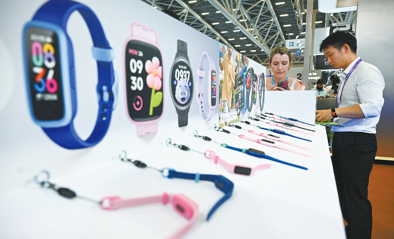 4月15日,境外采购商在广交会智能穿戴展区洽谈。当日,第139届中国进出口商品交易会(广交会)在广州开幕。本届广交会首次增设智能穿戴专区,更多新企业、新产品、新技术走向世界,服务全球消费者。 新华社记者 邓华 摄