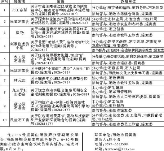 龙岩市政协重点提案办理协商计划