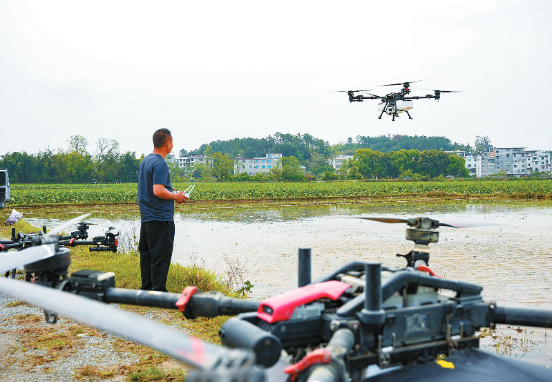 在长汀县河田镇南塘村,一架载满稻种的无人机腾空而起,沿着规划航线匀速飞行,舱门打开,饱满的稻种如细雨般均匀洒落,沉入水田,短短十几分钟便能完成数亩田块的播种作业,相较于传统人工撒种效率提升了近10倍。