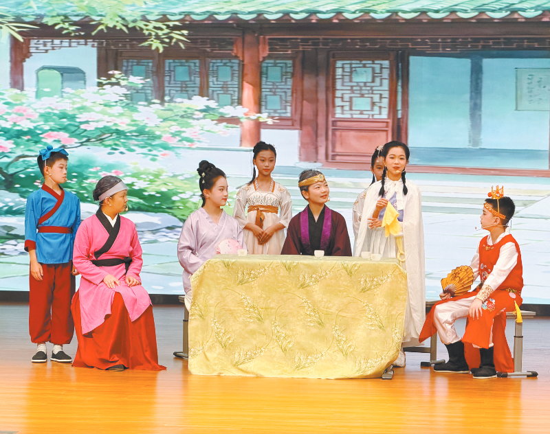 学生情景剧表演《妙玉请茶》。