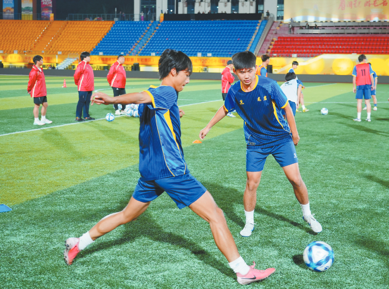 夜幕下长汀万人体育场内灯火璀璨,专业赛事照明系统全面开启,整个赛场洋溢着紧张而热烈的备战氛围。漳州队率先步入赛场展开适应性训练,队员们迅速进入状态,从场地触感适应、热身拉伸,到分组对抗、战术磨合,每一个环节都有条不紊。队员们默契配合、积极跑动,认真打磨每一个战术细节,针对明日主场作战的龙岩队制定破局之法,尽显备战硬仗的专注与严谨。